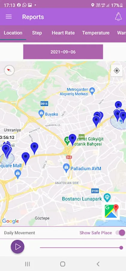- Browse previous watch locations on map for a given day;