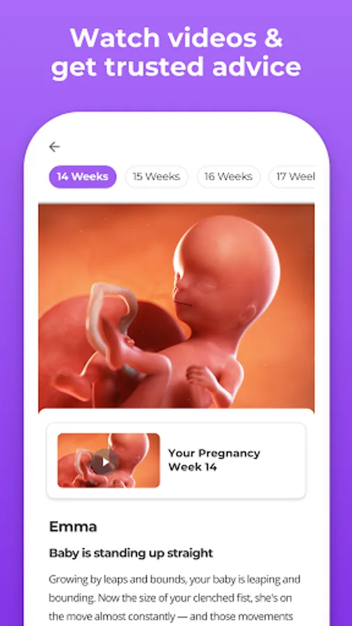 * Videos showing baby’s development in utero during each week of pregnancy 💻
