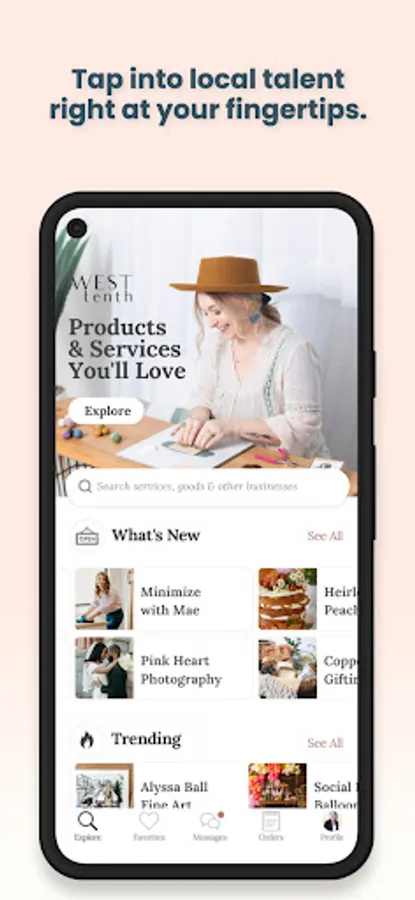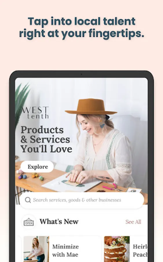 As featured in Forbes, TechCrunch & more, West Tenth lets you shop local custom goods and find service professionals near you - right from your phone. Tap into the talents of the businesses in your own neighborhood. Whatever you're looking for, there's likely someone on West Tenth who bakes it, makes it, photographs it, designs it, organizes it, or does it.
