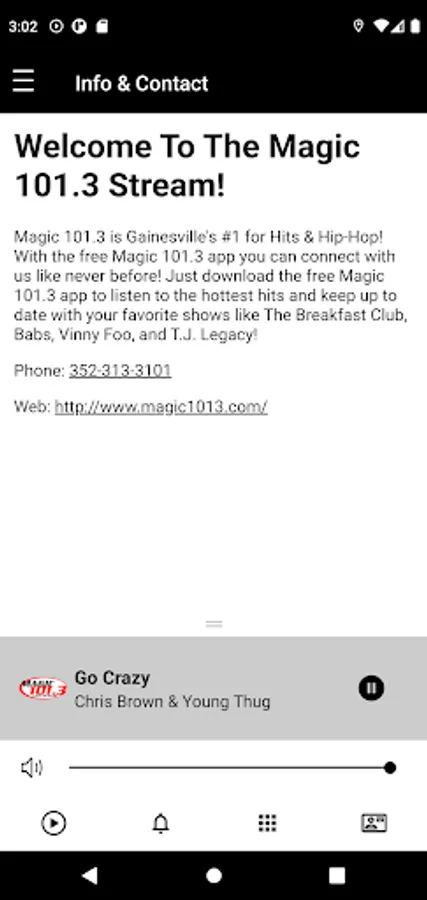 Magic 101.3 is Gainesville's #1 for Hits & Hip-Hop! With the free Magic 101.3 app you can connect with us like never before! Just download the free Magic 101.3 app to listen to the hottest hits and keep up to date with your favorite shows like The Breakfast Club, Babs, Vinny Foo, and T.J. Legacy!