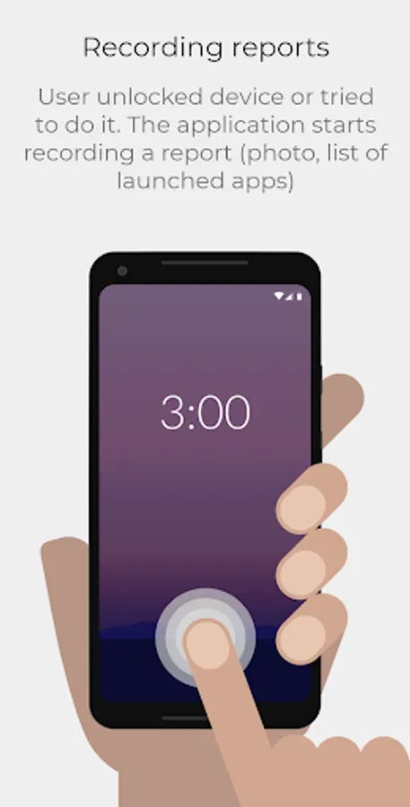 2) User unlocked device or tried to do it. The application starts recording a report (photo, list of launched apps);