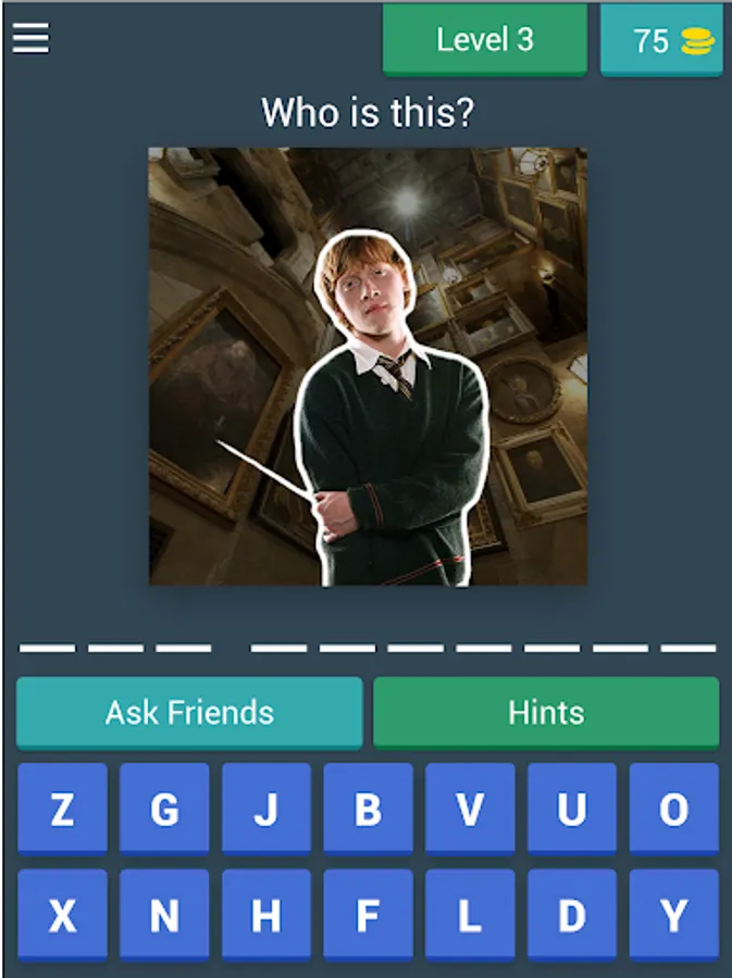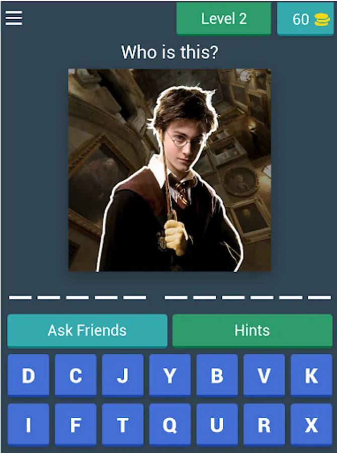 Play and test how much you know the Harry characters by answering each question in the corresponding levels, if you complete the levels you can receive coins, these coins can be used to skip the more difficult levels!