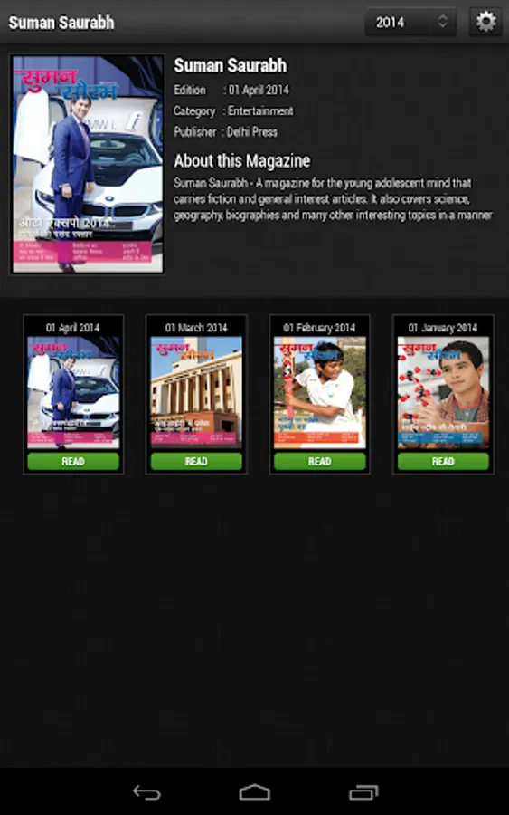 Suman Saurabh - A magazine for the young adolescent mind that carries fiction and general interest articles. It also covers science, geography, biographies and many other interesting topics in a manner that is informative and engaging.