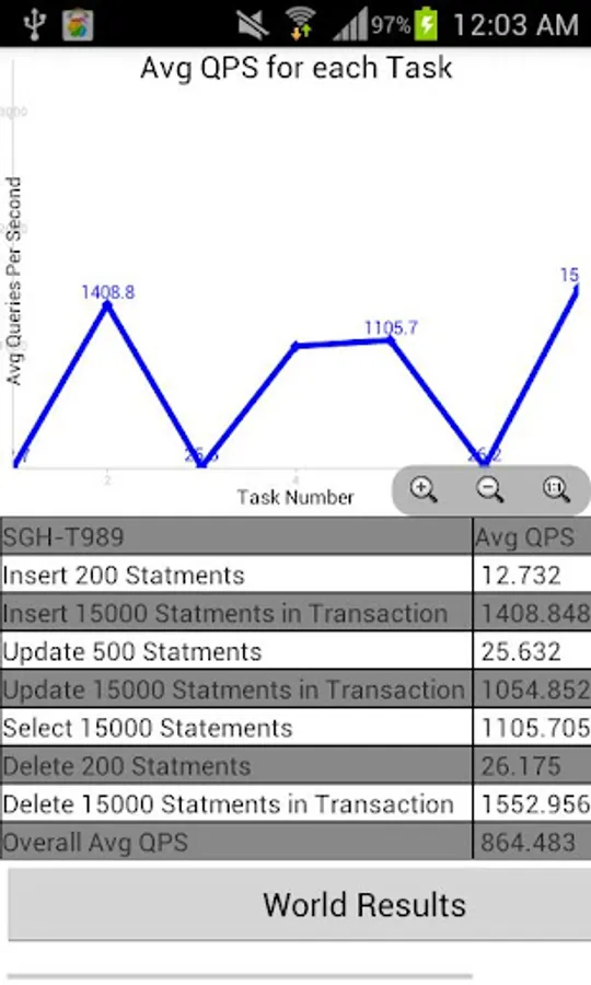 Note: The speed of executing queries doesn't equal the processing speed of the phone. It is related to processing speed and reading/writing to the memory.
