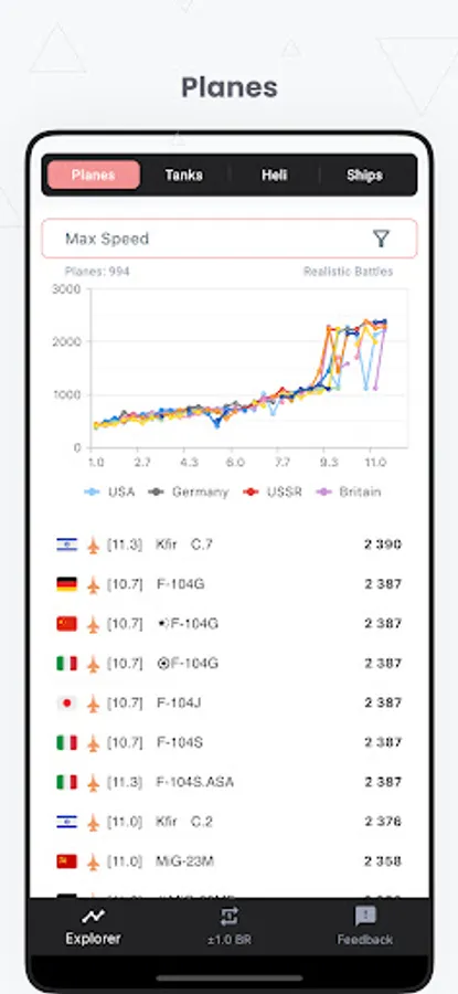 Over 50 charts for aircraft, tanks, helicopters, and ships.