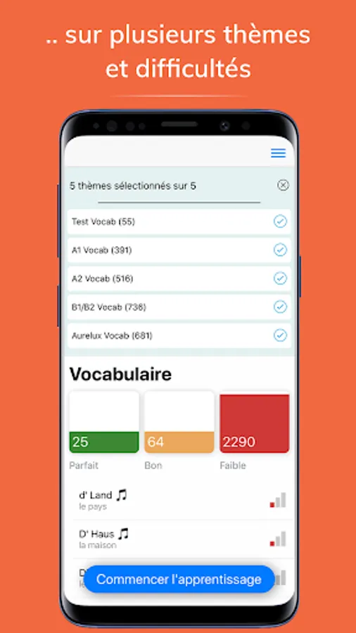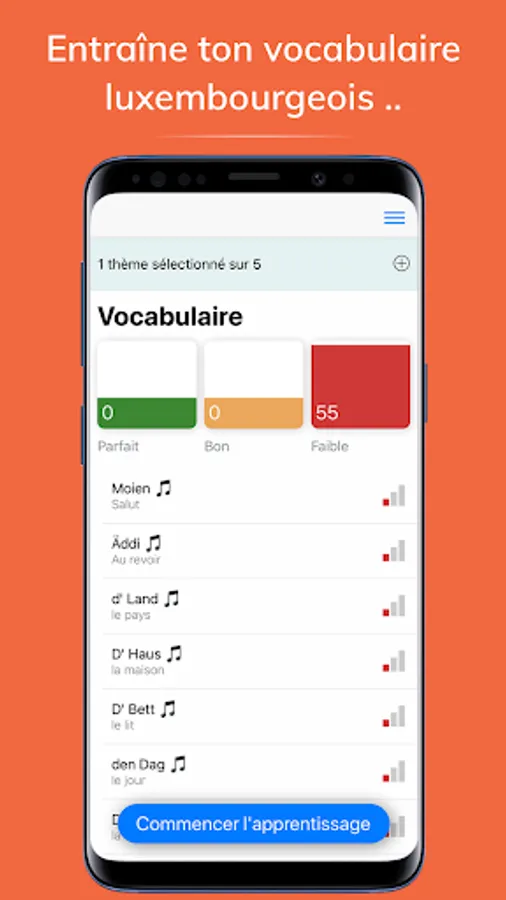 With more than 3000 words and audios, this new application helps you to train on Luxembourgish vocabulary. Wuertschatz helps you identify and overcome your difficulties with its intelligent algorithm. Choose one or more themes, and test yourself!