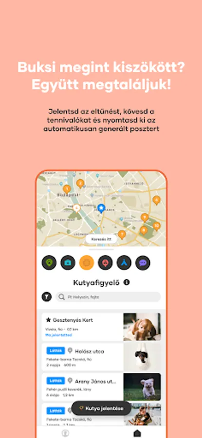 * According to statistics, one in 3 dogs disappears once in their lifetime. 80% of them never show up. The Wuff app puts a new, powerful tool in the hands of the dog-friendly community to find the lost animal home. Report your missing dog, print the automatically generated poster and share it on known social networks. Help others, build a supportive community: report in the app if you see a stray animal.