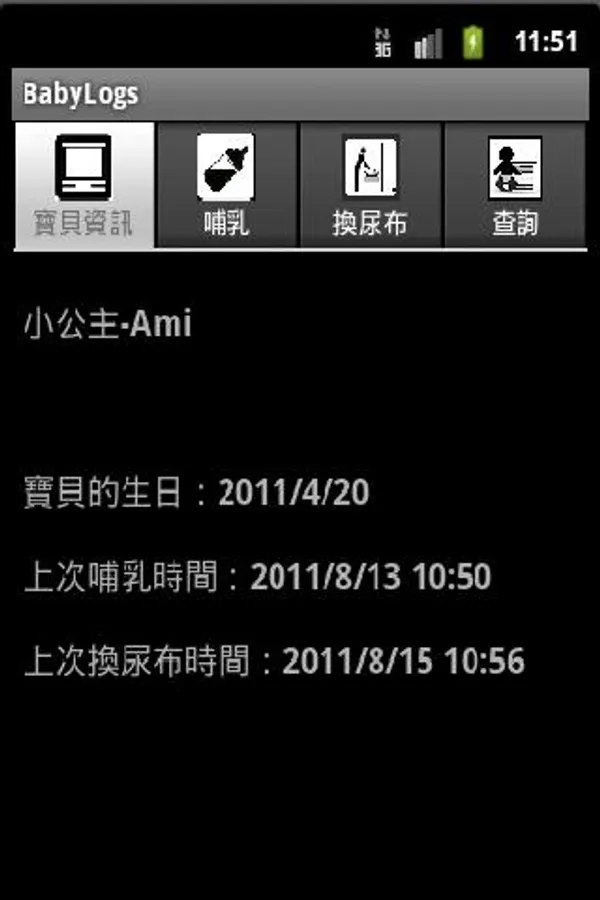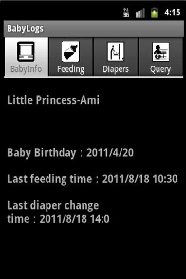 Records to help the novice parents changing diapers and breast-feeding baby information. Is easy to use utility.