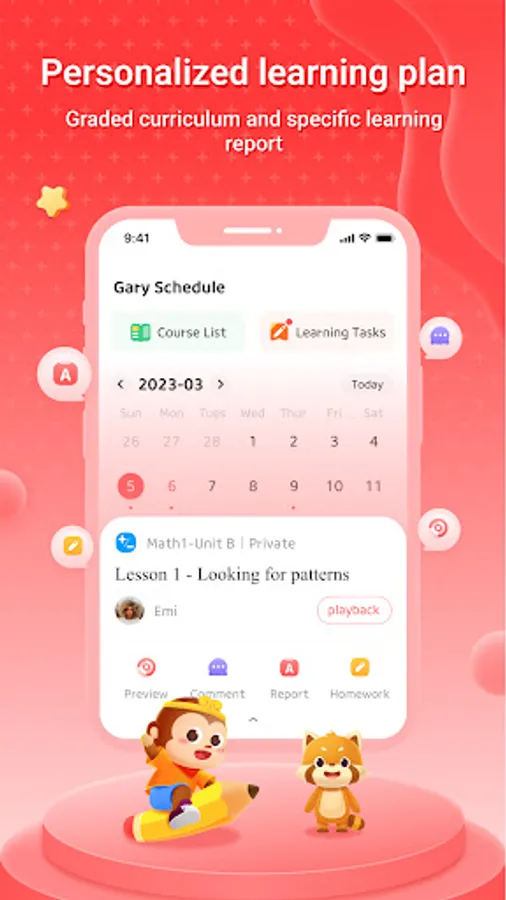 · Check course schedule anytime: Smart switching calendar to control the learning progress