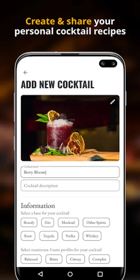 Not sure what to drink, or want to try something new? Based on your taste preferences, our bartender app will recommend the cocktail recipes we think you’re most likely to enjoy.