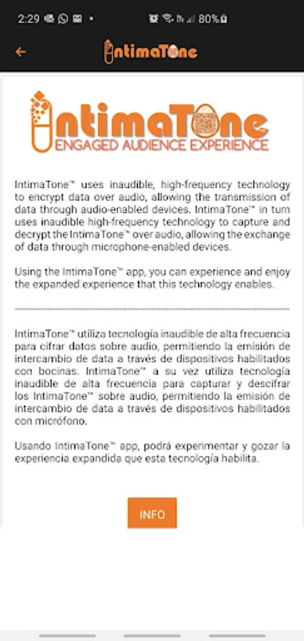 IntimaTone ™ adopts the user experience by providing digital behaviors about data, collected from IntimaTone ™ service by adopting the user experience and providing digital behaviors about the service data collected from users' mobile devices. This stems from the consumption of WebvOZ ™ tones and the pre-provisioning of easy-to-use data that can be read, heard or understood by context-aware audiences. As "Eggs" or WebvOZ ™ encrypted data capsules, once nested within the Device - activates IntimaTone ™ for context-sensitive content pre-provisioned "Wake-up" - in decoding the device from the appearance of the "unpacked application software" "from IntimaTone ™ and provides an audience experience. Multiple behaviors - and their combinations can be activated allowing more than 120 configurable and unique experiences, from passive responses even in "Airplane mode" to synchronizations of image, video, text, URL and / or notifications with context, location and experience ... Among others! Users mobile devices. This stems from the consumption of WebvOZ ™ tones and the pre-provisioning of behaviors that are easy to display content that can be read, heard or understood by context-aware audiences. As "Eggs" or WebvOZ ™ encrypted data capsules, once deciphered by the Device - activates IntimaTone ™ for context-sensitive content pre-provisioned "Wake-up" - in the decoding of the device from the appearance of the "unpacked application software" "from IntimaTone ™ and provides an audience experience. Multiple behaviors - and their combinations can be activated allowing more than 120 configurable and unique experiences, from passive responses even in "Airplane mode" to synchronizations of image, video, text, URL and / or notifications with content in context, location and experience. . among other!