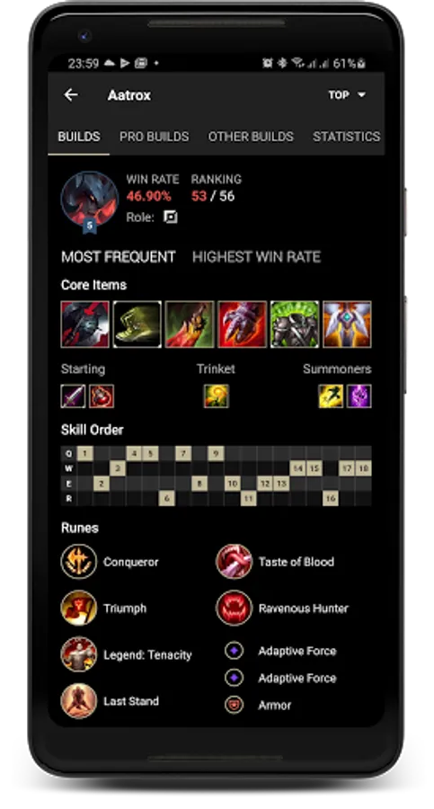Winning is the most important aspect of playing a competitive game like League. Let LoLegacy aid your course on the Summoner's Rift by providing a quick & easy path to your favorite champions builds which are only made possible by analyzing millions of ranked matches across all regions. Besides, the pro builds section helps you learn how to play from your favorite professional gamers. LoLegacy also features matchup insights, counters & tips, guides, and combos which are everything you need to know to crush your enemy.