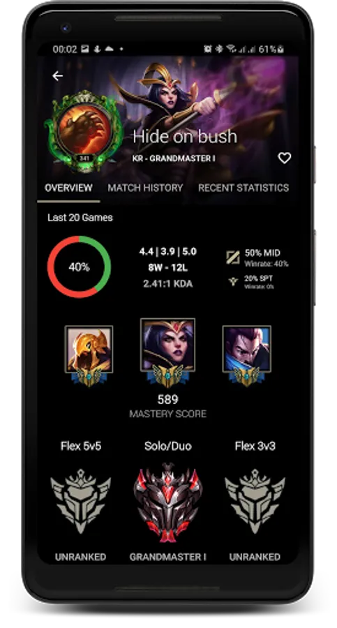 LoLegacy gives access to the detailed match history, rank, and statistics of any summoner. Take advantage of this by analyzing your own gameplay or learning from other experienced players. You can also spy on your enemies live using the real-time in-game tracker. Master all these tools and become a Master tier player yourself in no time!