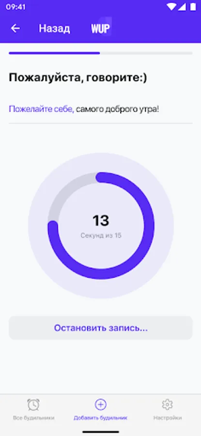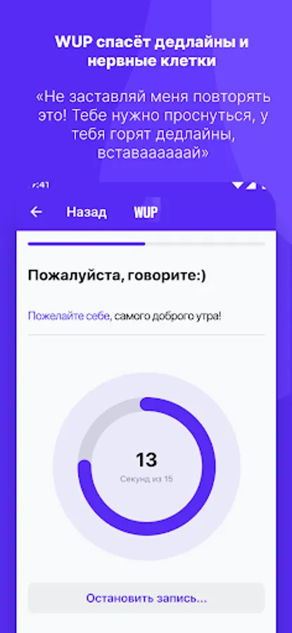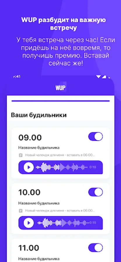 With the free WUP voice alarm clock, you can write down the words that will convince you to get up at the right time, do not put it off every 5 minutes.