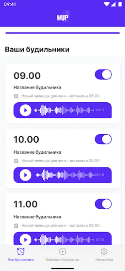 WUP is the perfect voice alarm to set the mood for the day. All features in the app are free, just try it!