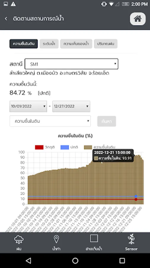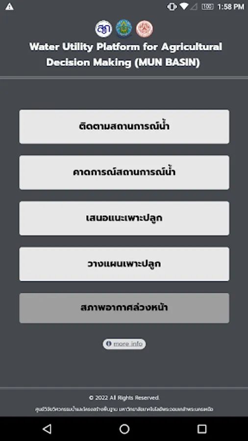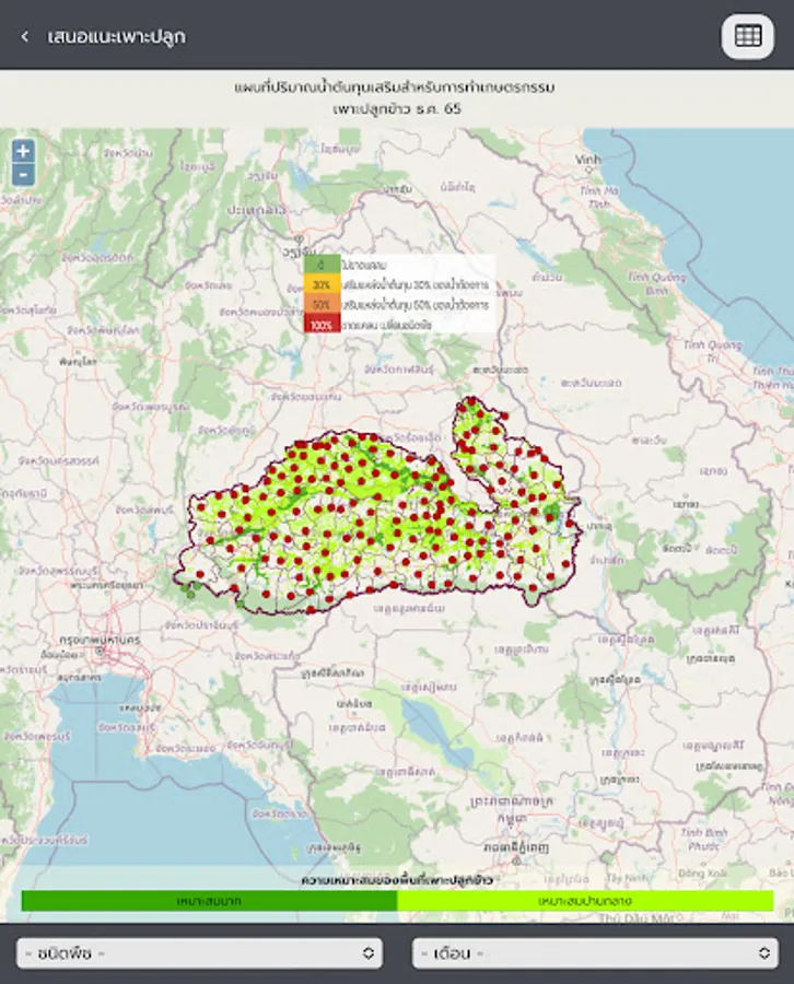 แพลตฟอร์มนี้สามารถใช้งานในการติดตามสภาวะการเกษตรกรรมในแปลงเกษตรกรรมต้นแบบ 3 แห่ง จากข้อมูล IoT Sensor และสามารถคาดการณ์สภาพน้ำต้นทุนและการเปลี่ยนแปลงของพื้นทีเกษตรกรรม เพื่อเป็นแนวทางในการใช้น้ำเกษตรกรรมภายใต้น้ำต้นทุนที่เปลี่ยนแปลง โดยผู้ใช้งานสามารถเชื่อมโยงข้อมูลนำเข้าในระดับแปลงเกษตรกรรมเพื่อจำลองรูปแบบการทำเกษตรกรรม และแนวทางการใช้น้ำเกษตรเพื่อลดความเสี่ยงของผลผลิตและพื้นที่เสียหายจากความไม่แน่นอนของปริมาณน้ำ