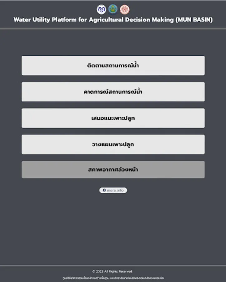 แพลตฟอร์มนี้สามารถใช้งานในการเข้าถึงผลคาดการณ์สถานการณ์น้ำรายฤดูกาลและระยะสั้น 14 วัน ประกอบด้วย ปริมาณฝน ปริมาณน้ำไหลเข้าอ่างเก็บน้ำ ปริมาณน้ำท่า ปริมาณและพื้นที่น้ำท่วม รวมถึงการเสนอแนะรูปแบบการทำเกษตรกรรมภายใต้ปริมาณน้ำต้นทุนคาดการณ์ที่มีการเปลี่ยนแปลงรายฤดูกาล และผู้ใช้งานสามารถเชื่อมโยงข้อมูลนำเข้าเพื่อจำลองผลการคาดการณ์สถานการณ์น้ำ