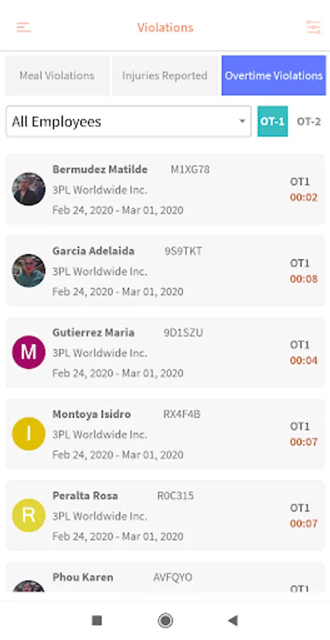 -List of high-risk employees