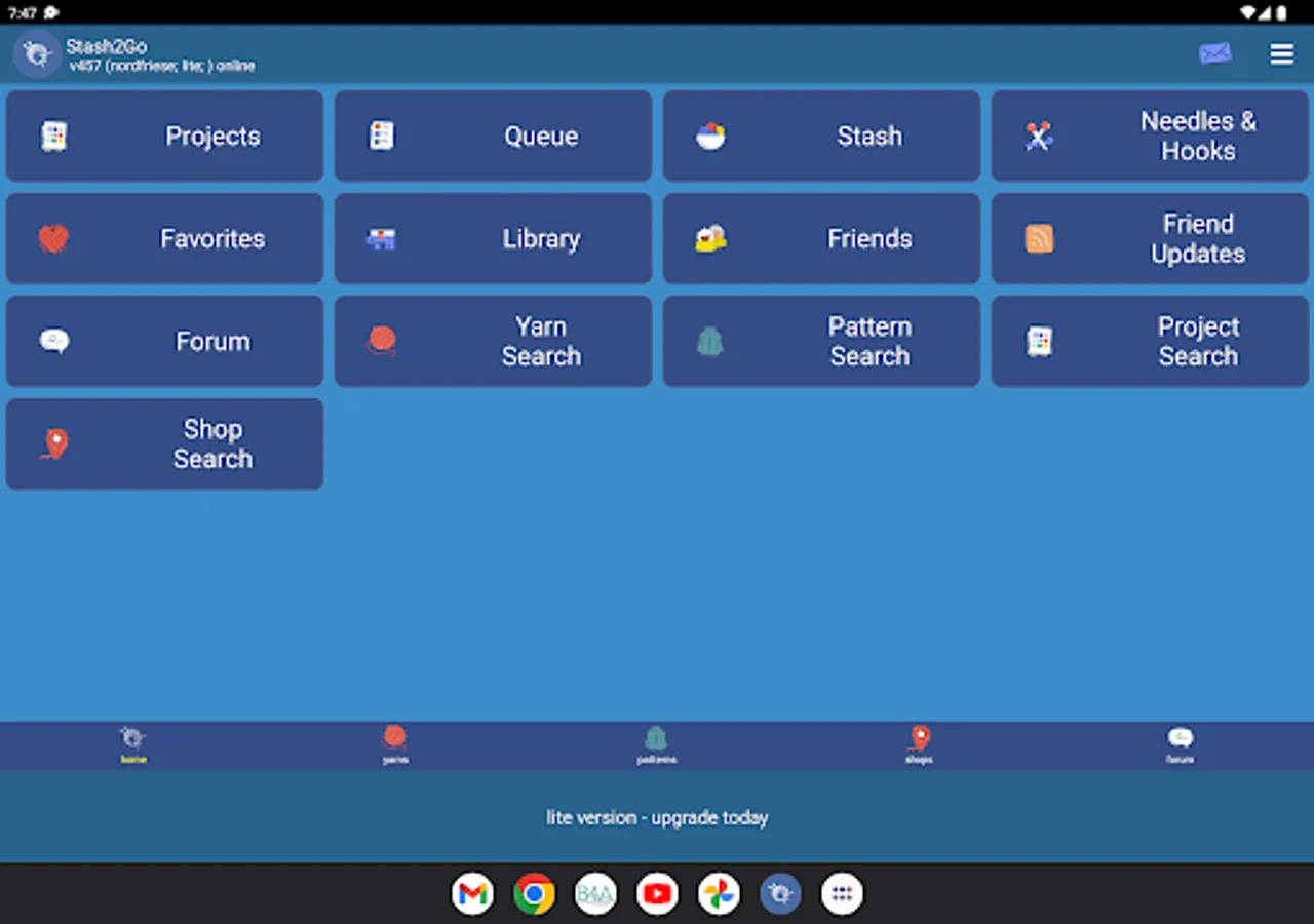 Stash2Go allows you to use Ravelry on the go, on Android devices. It provides access to yarns, projects, patterns and friends. Ravelry is the world's largest community for knitters and crocheters. Note that Stash2Go is not affiliated with Ravelry.