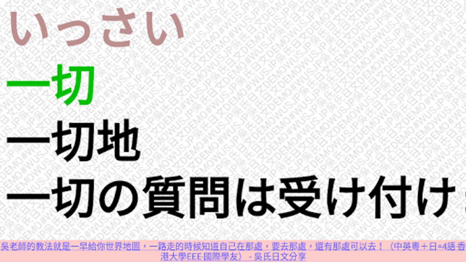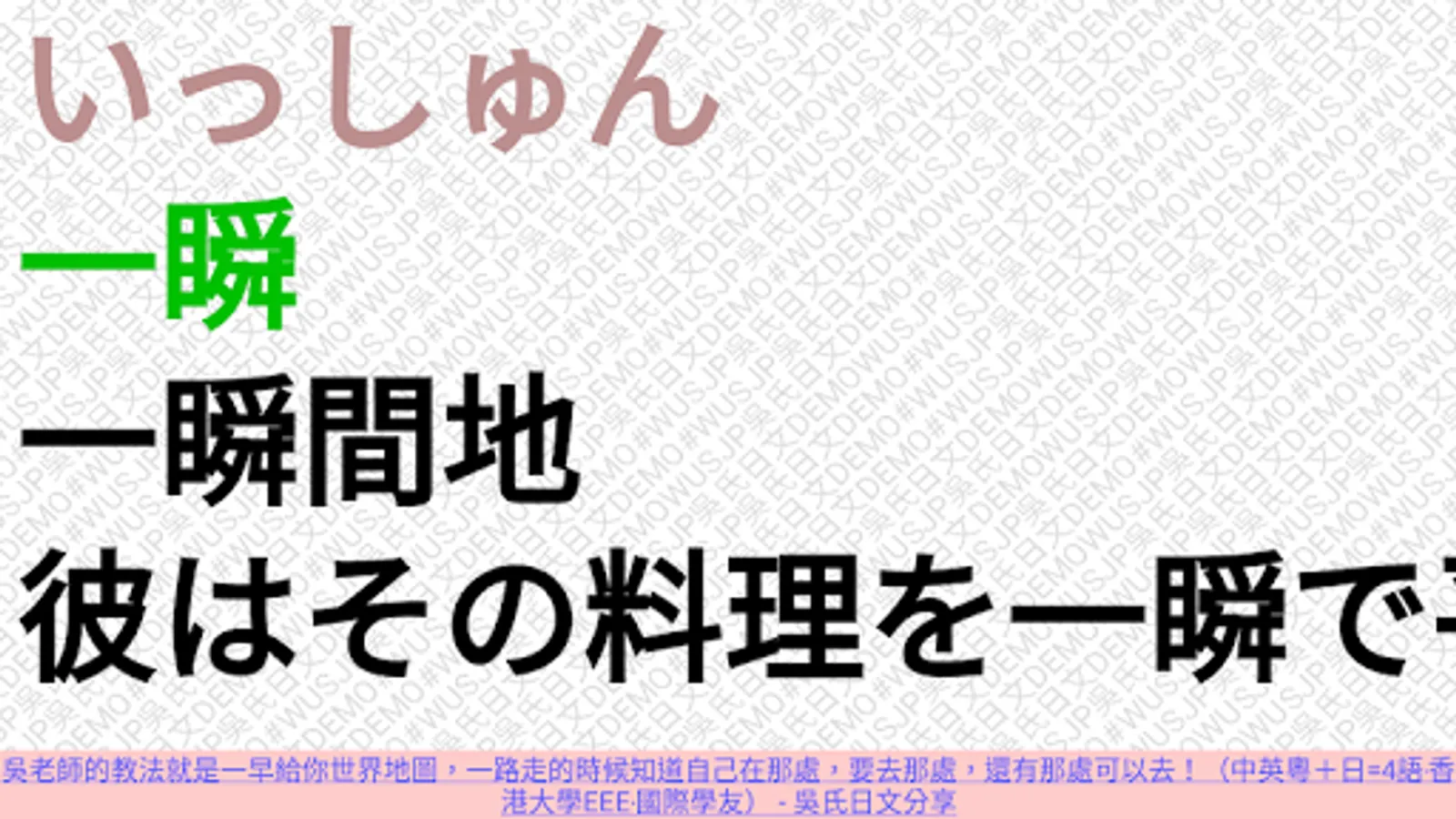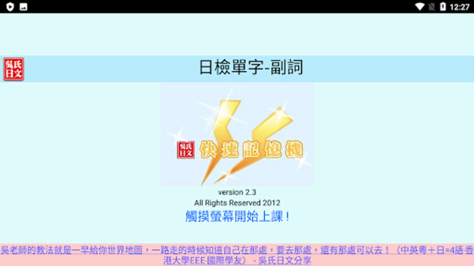 本APP係教學實績顯著之「吳氏日文 WUSJP.COM」之「Android手機版」快速記憶機。