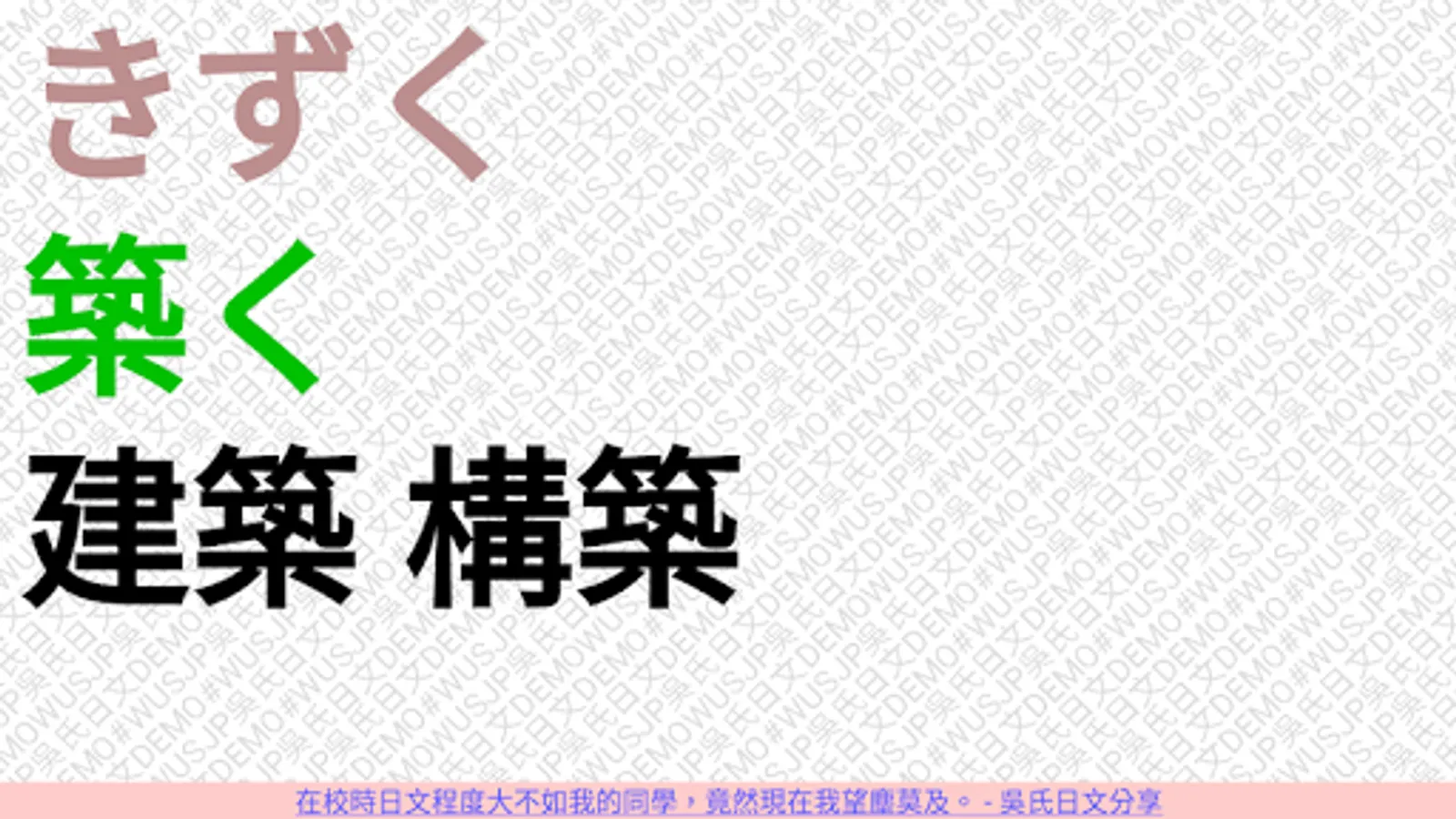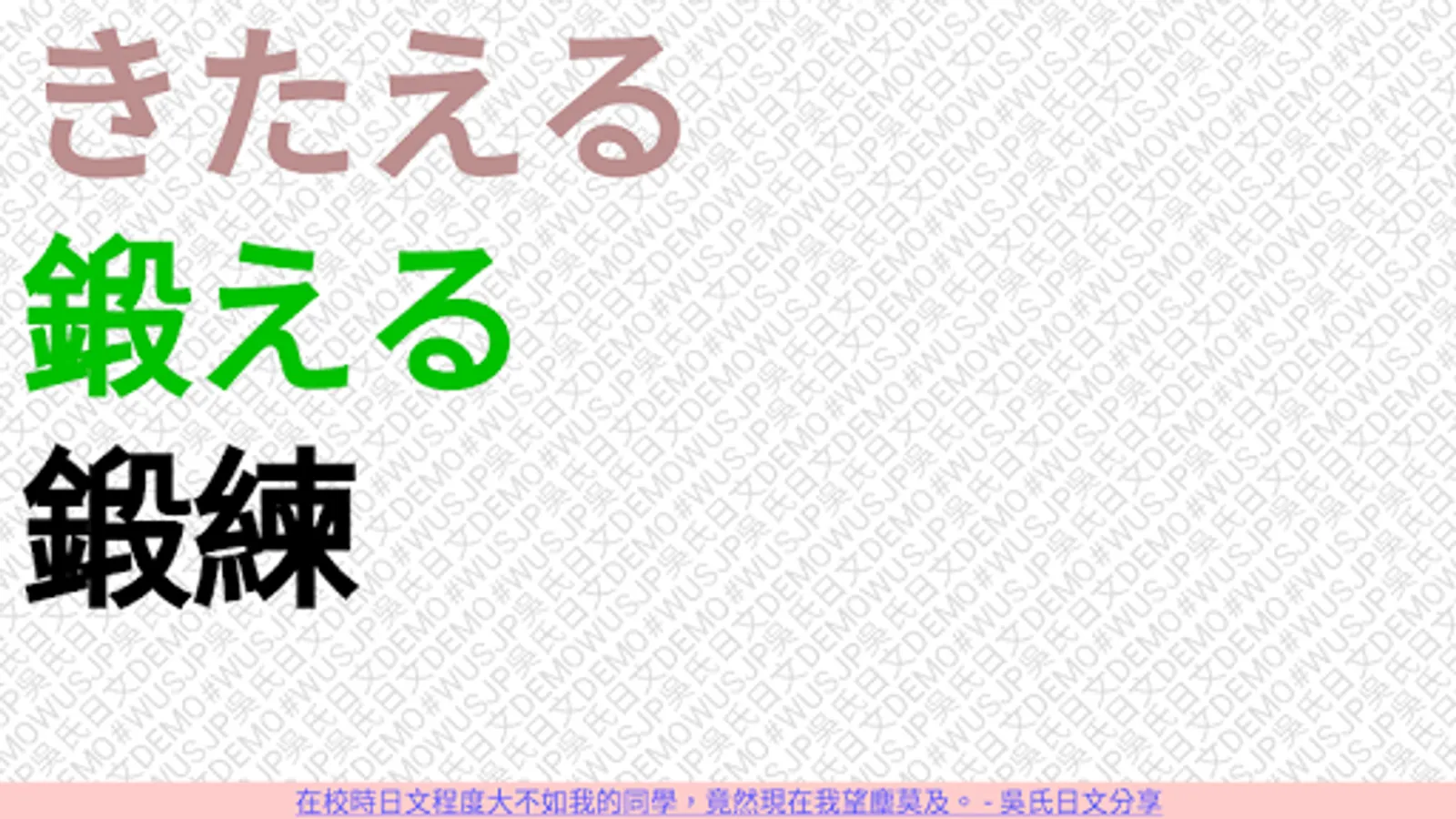 本APP係教學實績顯著之「吳氏日文 WUSJP.COM」之「Android手機版」快速記憶機。