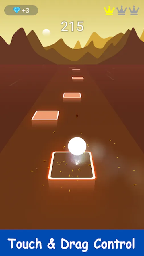 1. Touch, hold and drag to 2 sides to control the ball to jump on the tiles.