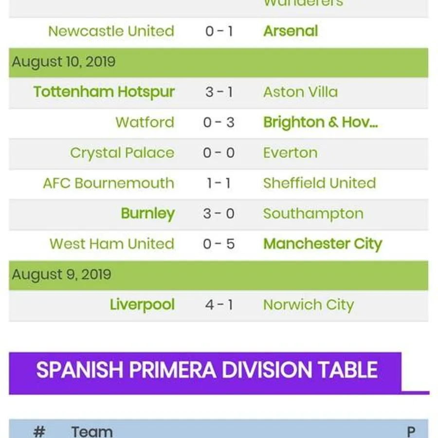 Read latest sport articles across the globe view upcoming sport fixtures from big leagues, view latest up to date live scores,results and tables.