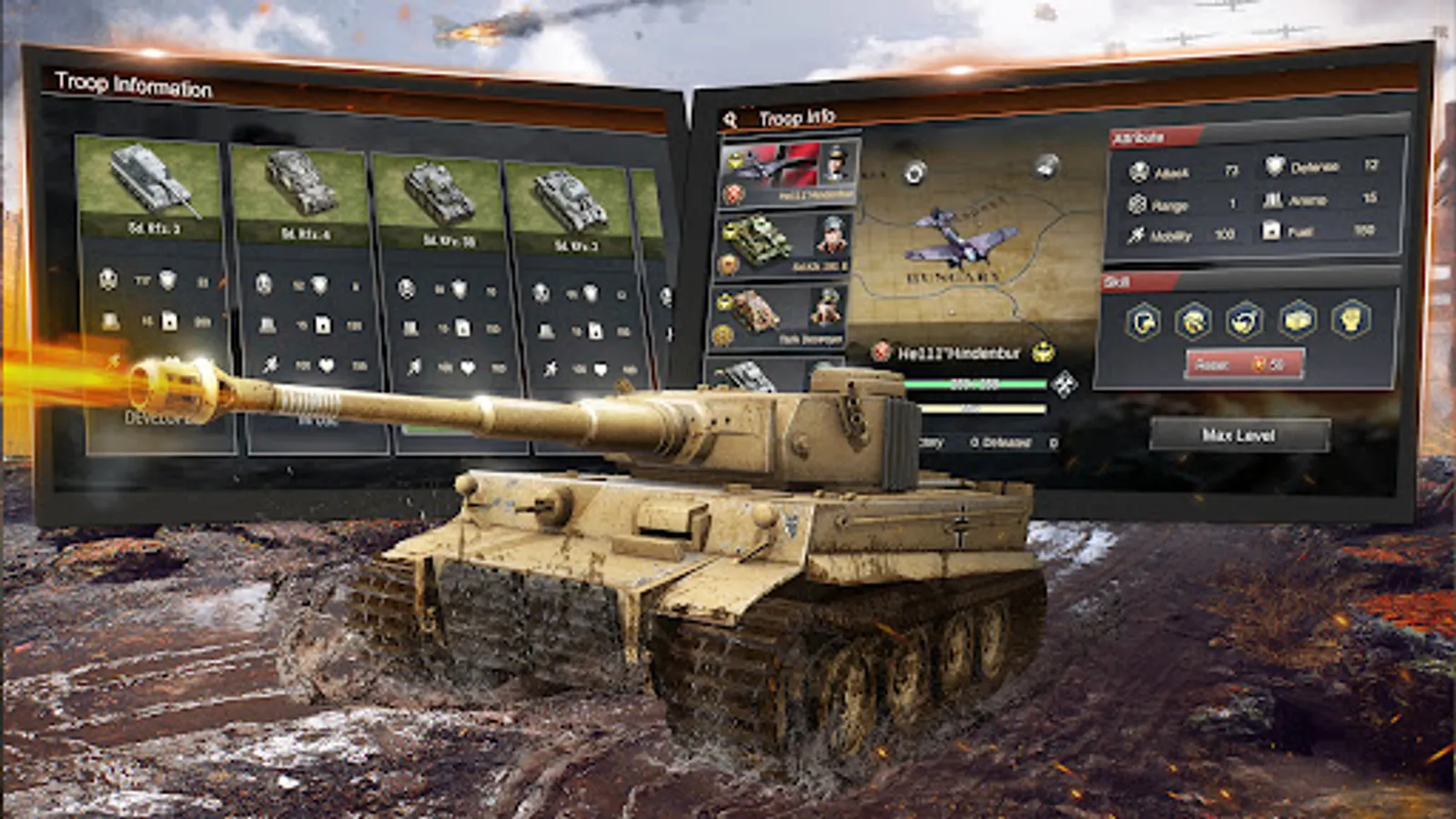 More than 200 troops are waiting for you to recruit, including Tiger I, Karl-Gerät, Schwerer Gustav, Me262, Soviet Katyusha rocket launchers, KV tanks, and MiG aircraft.
