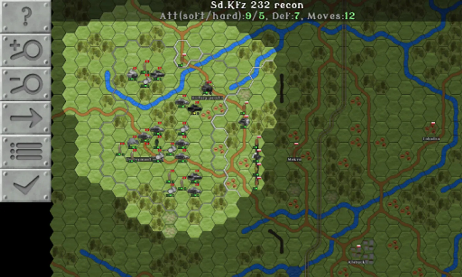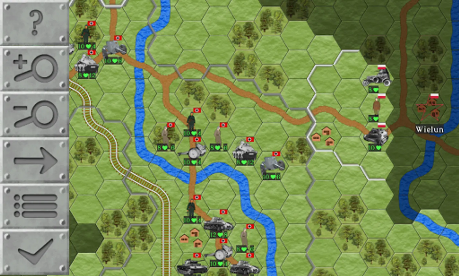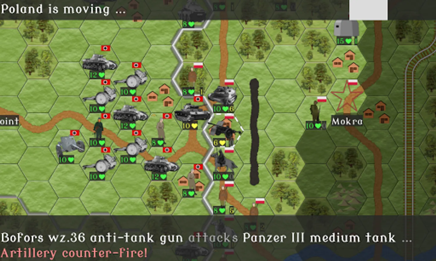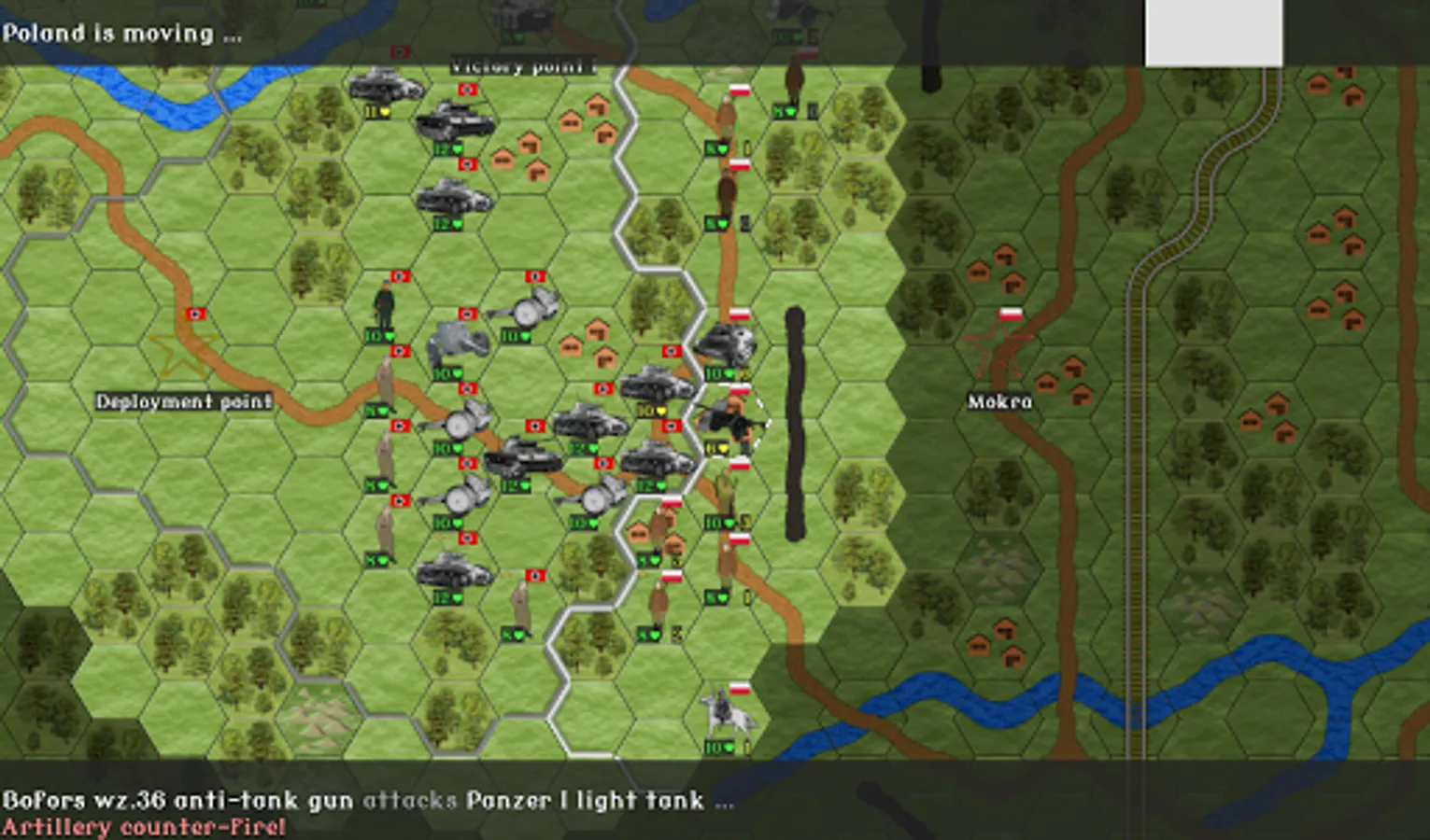 Fans of hardcore hex strategy games might enjoy the fact that the game has actual World War II era German and Polish combat vehicles and armament, supply line mechanics, artillery counter attacks, maps based on the actual historical battles, and so forth. (Some liberties have been taken in interpreting few of the details, to make the game more entertaining. But we've tried to be as close to the course of events as possible.)