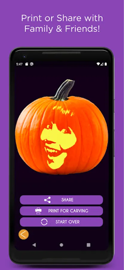Introducing the Pumpkin Masters Carve Your Selfie App. This app lets you turn a selfie into a Jack-O’-Lantern design you can then carve on a real pumpkin! First, choose a photo from your phone’s library or take a new photo – can be a selfie, a picture of your child, your pet, and more. Then, use the controls to adjust the contrast and edit your image. Before you know it, you will have your own personalized Jack-O’-Lantern design. You can share it with your friends digitally or print it out for carving onto your pumpkin. The perfect app for carving out some time with friends and family this Halloween.