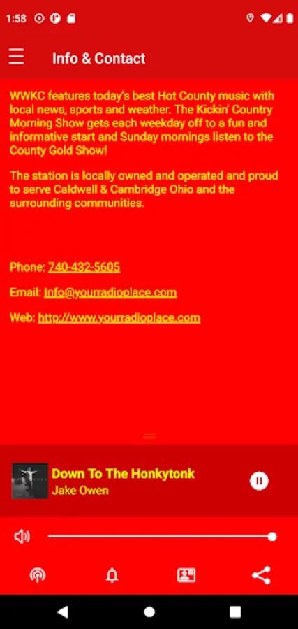 Playing a blend of today's country and all-time favorites along with local news and sports. Jump-start your morning with Kickin' Country for entertainment, contests and information. WWKC is the home of The Lia Show. Kickin' Country KC105 in Caldwell, OH is locally owned and operated by AVC Communications, Inc.