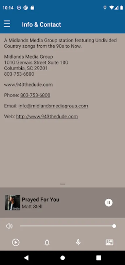 94.3 The DUDE is a country radio station in Columbia, SC that plays UNDIVIDED COUNTRY. A mix of music from the 1990s featuring Garth Brooks, George Strait, Brooks & Dunn and Alan Jackson plus songs from the 2000s by Kenny Chesney, Toby Keith, Rascal Flatts and Tim McGraw. We blend in today's country superstars like Jason Aldean, Carrie Underwood, Luke Bryan and Blake Shelton.
