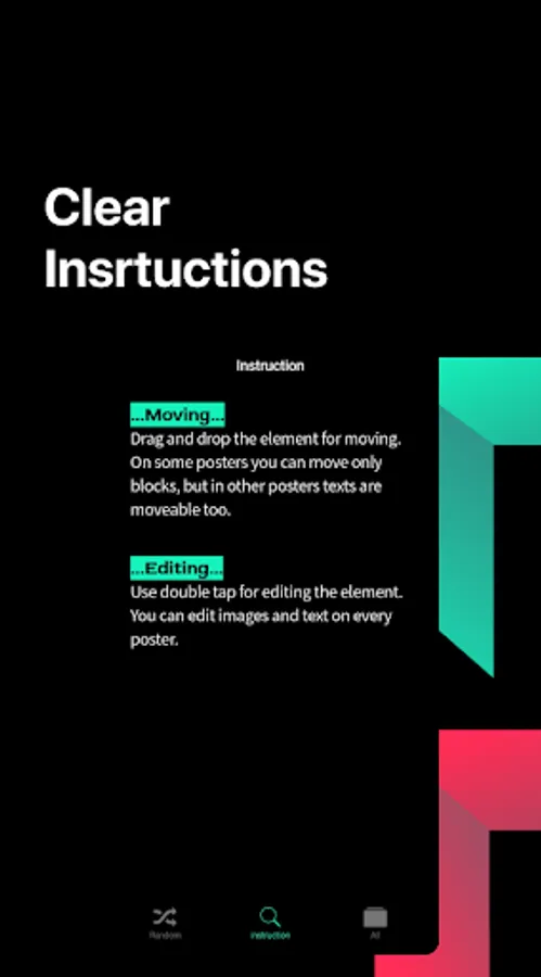 WWR Poster is very simple. The app contains only 2 actions: Drag and drop for moving the element and double tap for editing.