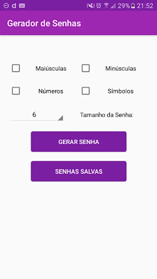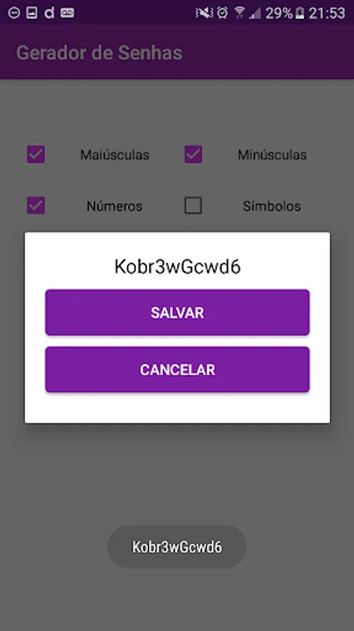 The application can generate random passwords using uppercase, lowercase characters, numbers and symbols.