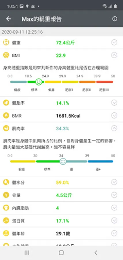 Our apps can analysis your body composition including BMI, Body Fat, Body Water...etc.