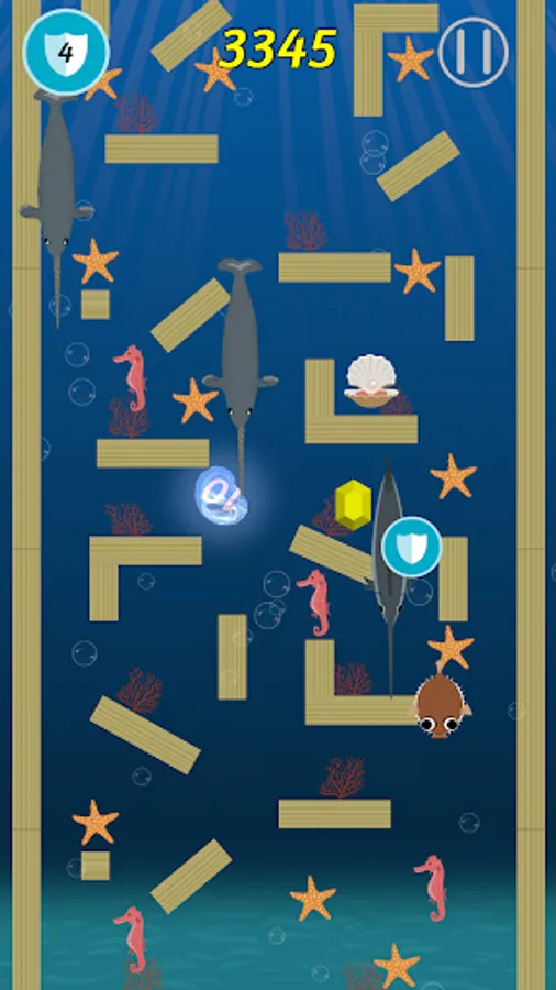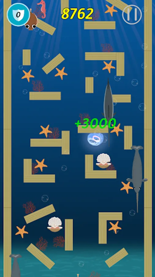 You can buy Shield Powerups in the virtual shop (coming soon more Powerups to buy). You earn coins while playing. At "game over" it convert points to coins and you can use these coins in the virtual shop.