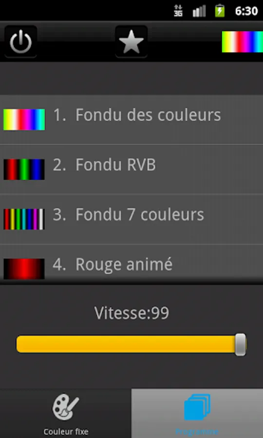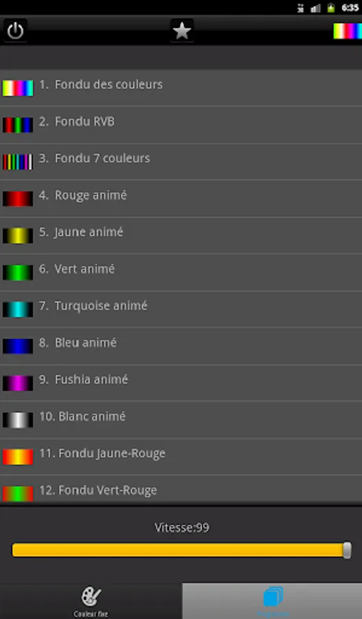Smart Color is a color control software that operates to a specific RGB controller. The user can chosir a fixed color or animated program of his unit, and the order is sent by the voice LED controller. The user can connect the speaker, headphone jack or Bluetooth. Easy Control can control up to 16 million fixed colors and 42 dynamic programs whose speed is adjustable from 0 to 99, the user can also record their favorite programs in the application.