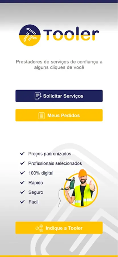 Through Tooler's app you can, in a 100% digital contract, request services from trained and qualified professionals to assist you with safety, quality and punctuality. And more: at Tooler, prices are standardized and you can see the evaluation of all providers!