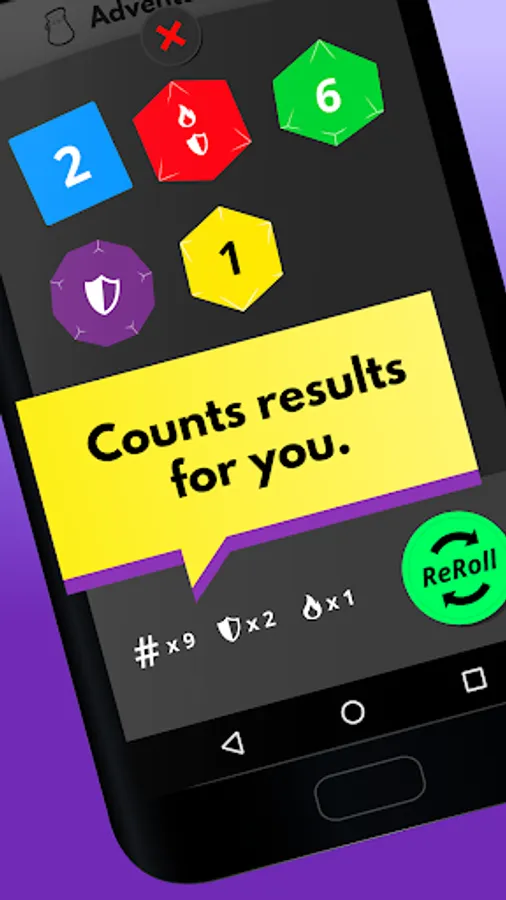 Calculates results for you: Each roll shows a total of the symbols rolled for your convenience.