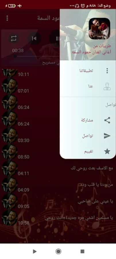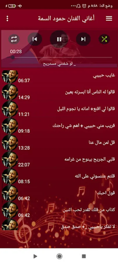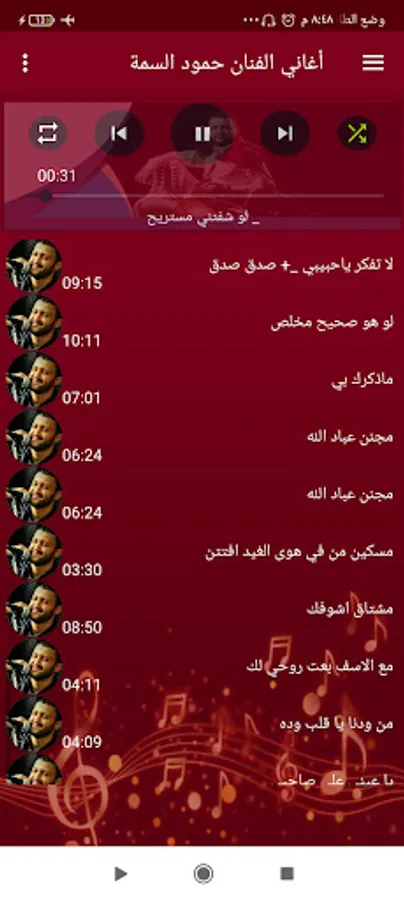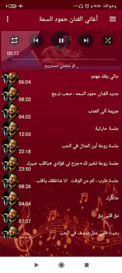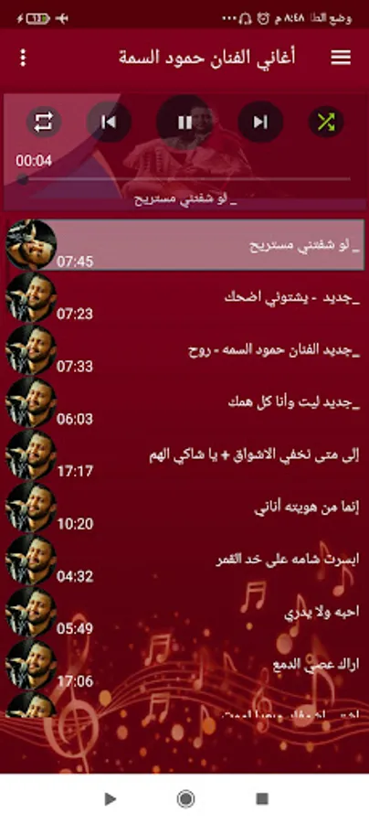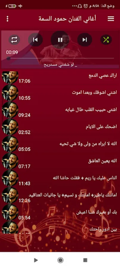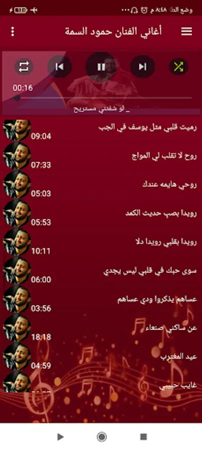It contains the songs of Muhammad Hammoud Al-Harthy, with the voice of the artist Hammoud Ali Al-Sama