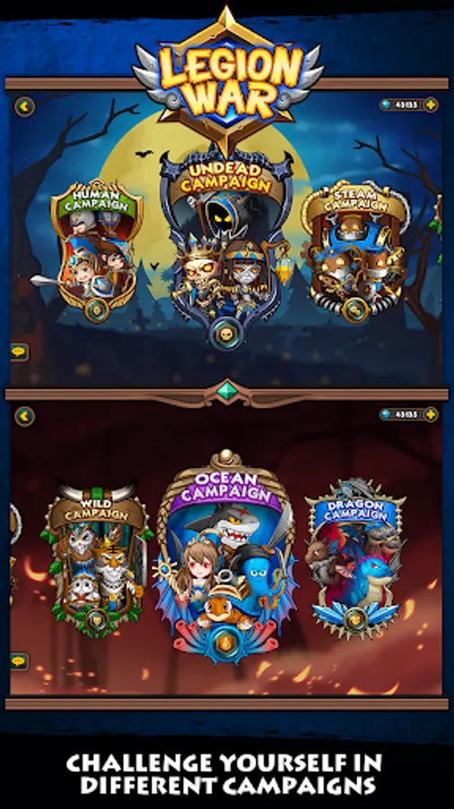 We have 5 well-designed campaigns along with each legion, more than 50 levels in total.