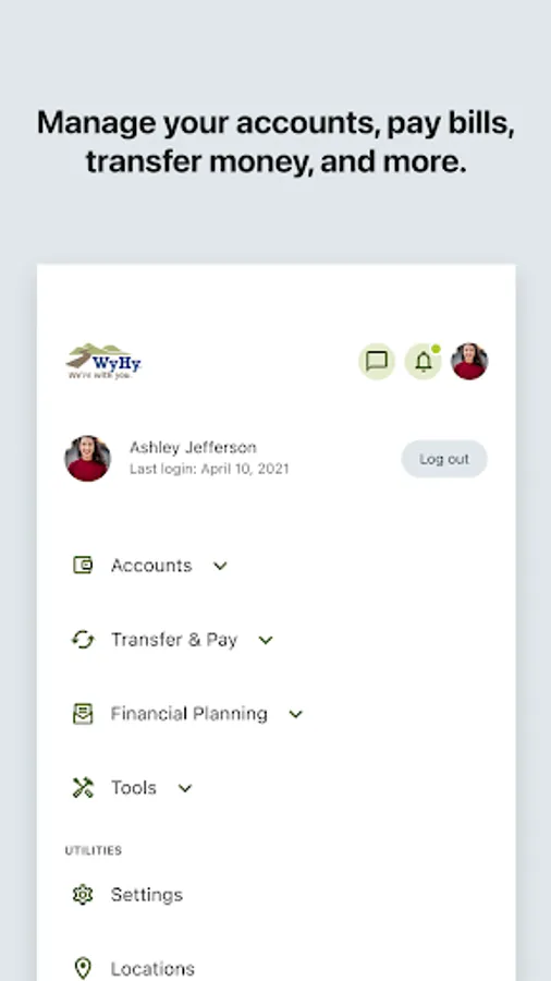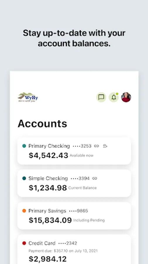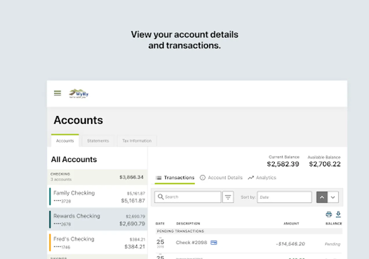 WyHy Mobile Banking allows you to apply for a loan, check balances, view transaction history, transfer funds, deposit checks and pay your bills on the go!