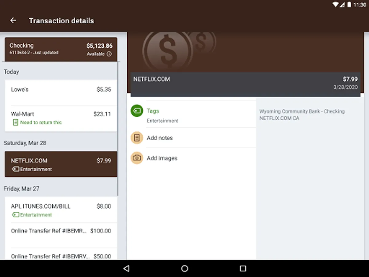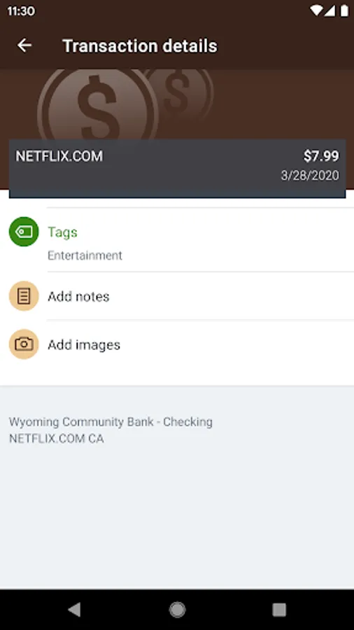 Keep your transactions organized by allowing you to add tags, notes and photos of receipts and checks.