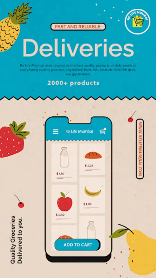 ReLife Mumbai is your everyday online grocery shopping app that home-delivers 1000+ daily groceries in just a min. Buy milk products, fresh fruits & vegetables, daily grocery, kitchen, home or office items by shopping for them online on ReLife Mumbai. Enjoy easy and smooth app experience with quick delivery. ⏰