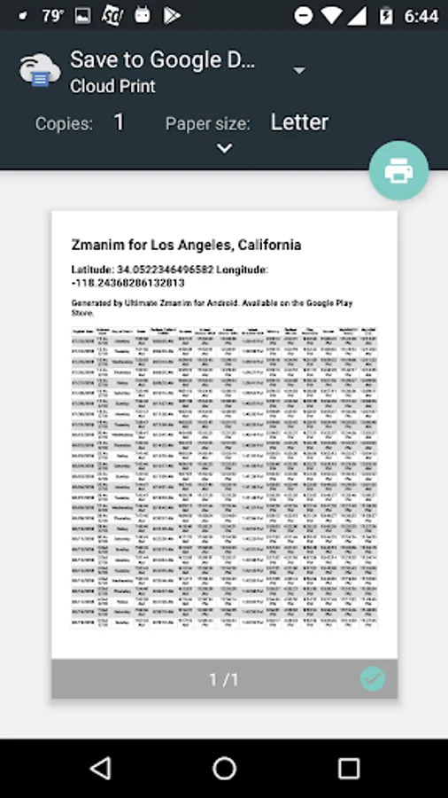 Ability to Print High Quality Zmanim Sheets / Charts for any range of times