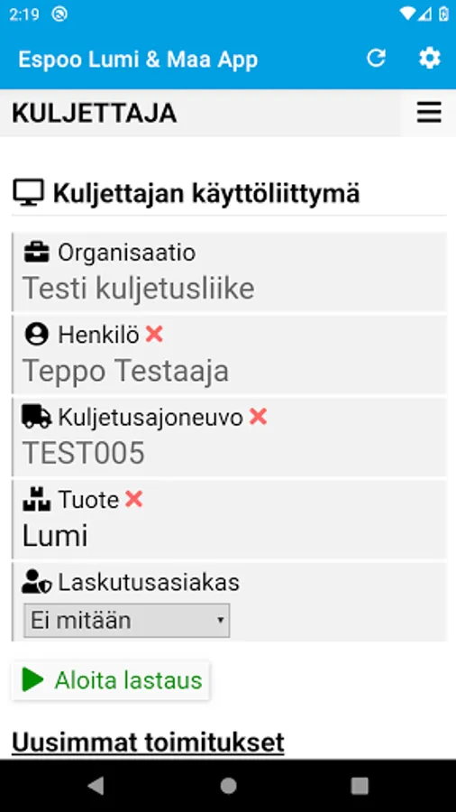 After accepting the registration, you can start delivering snow / soil to the collection points.