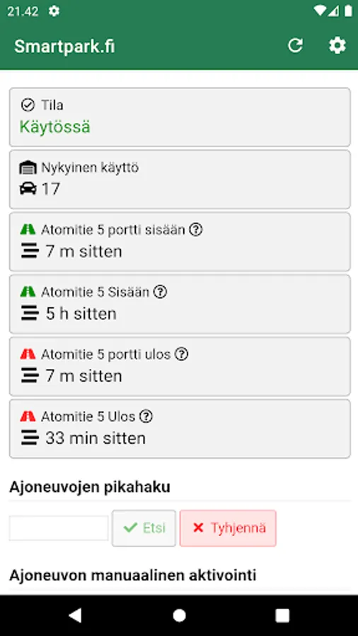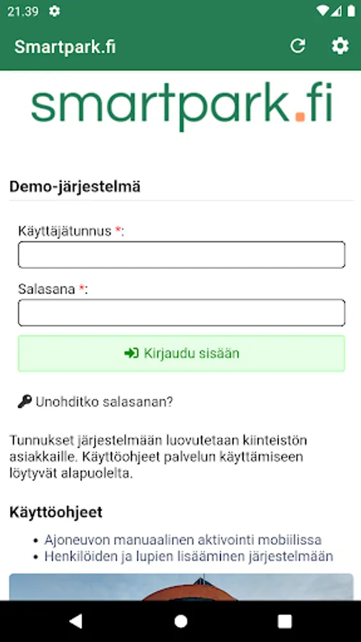 Smartpark.fi Parking Portal mobile application enables the following services: