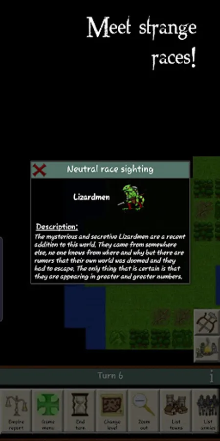 Rising Empires 2 features a rich and large technology tree and loads of buildings ranging from regular marketplaces to structures unique to specific races. Expand by building both settlements and fortifications. And even better: design your own troop types and try to master the advanced combat system with your own strategy. Make war against other empires, undead Ghouls, raging Minotaur clans, secretive Lizard men and powerful Dragons!