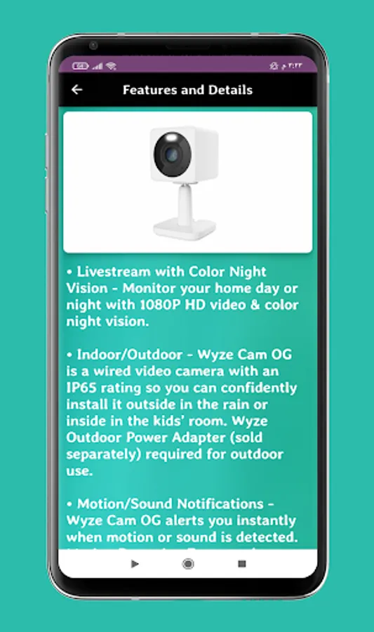 Content of wyze cam og guide app :-