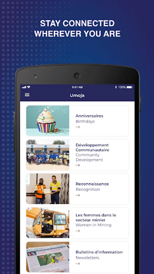 UMOJA, your one-click access to all the latest information from our company. From emergency communication to news, we present you in real time what you need.